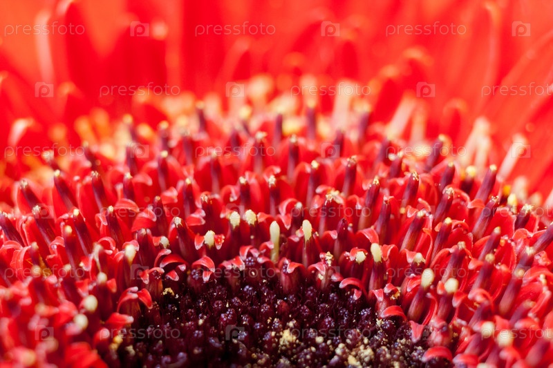 Крупный план средней части полукруга красного цветка герберы. Абстрактный цветочный фон