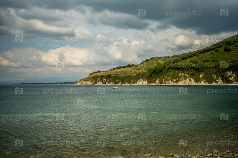 Морской пейзаж с видом на горы и побережье