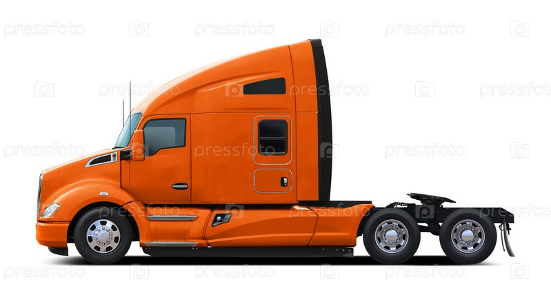 Современный американский грузовик Kenworth T680 полностью оранжевый