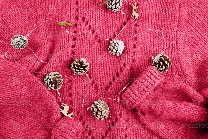 Вязаный шерстяной свитер модного цвета Viva Magenta, гирлянда