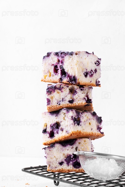 Финский пирог с чернилами (Mustikkapiirakka) в куске, посыпанный сахарным порошком на белом фоне