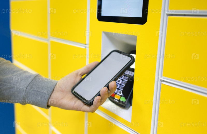 Крупным планом мужчина забирает почту из автоматического почтового терминала самообслуживания