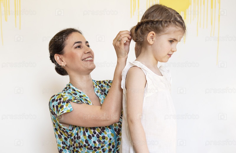 Парикмахер заплетает волосы девушки