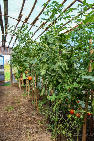 Созревание красных и зеленых помидоров в теплице