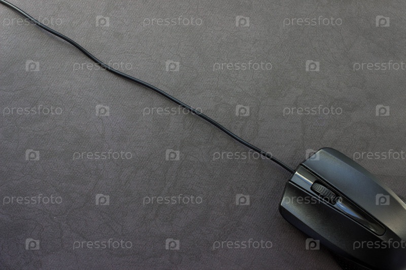 Черная компьютерная мышь с USB-кабелем на черном фоне