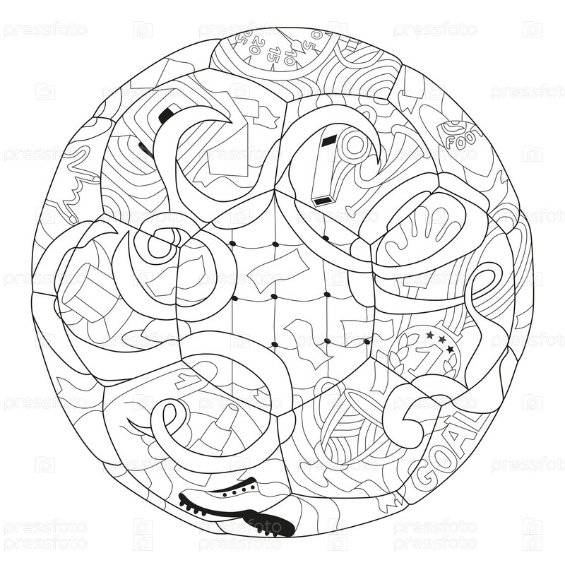 Футбольный мяч в стиле zentangle с чистыми линиями для окраски, чтобы облегчить стресс, дизайн футболок, татуировок и других украшений