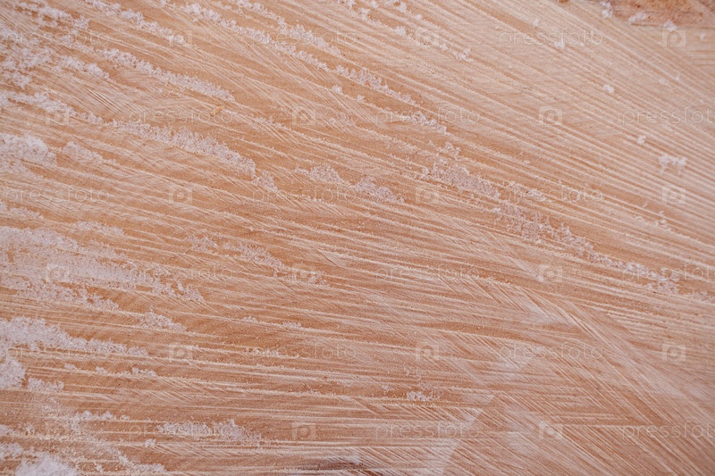 Деревянная текстура. Крупный план свежеспиленной древесины, покрытой свежим снегом и копировальным пространством