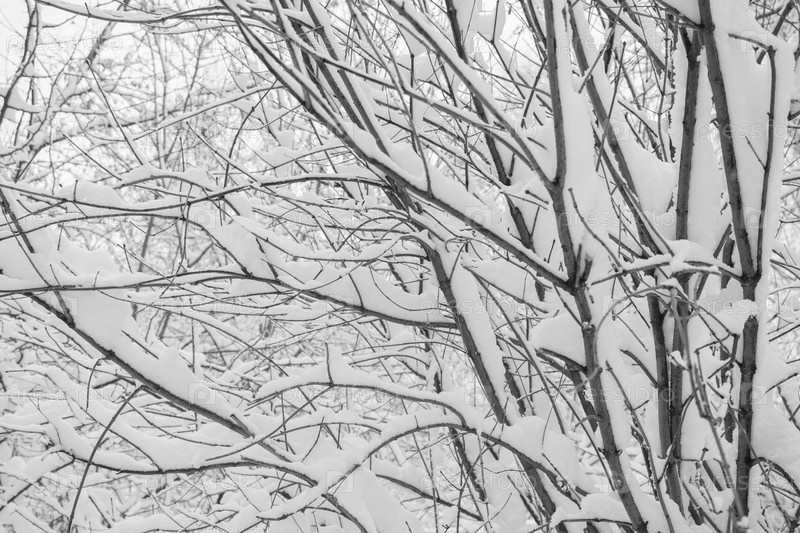 Черно-белый зимний фон из заснеженных ветвей деревьев