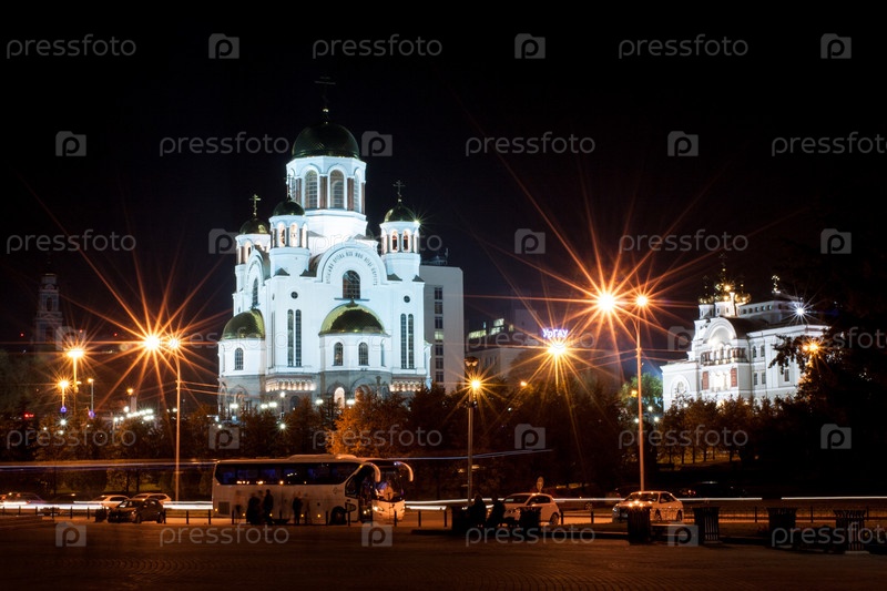 Екатеринбург, Россия - 26 сентября 2016 г.: Церковь на Крови вечером