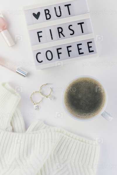 Но первый текст о кофе на лайтбоксе с чашкой кофе