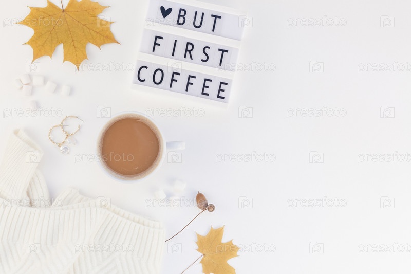 Но первый текст о кофе на лайтбоксе с чашкой кофе