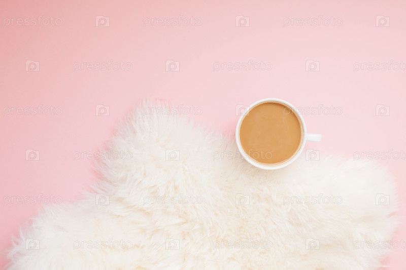 Чашка кофе с молоком на розовом фоне