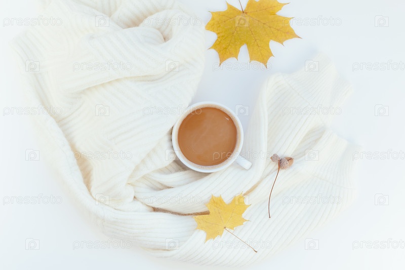 Уютный белый теплый свитер и чашка кофе Осеннее настроение