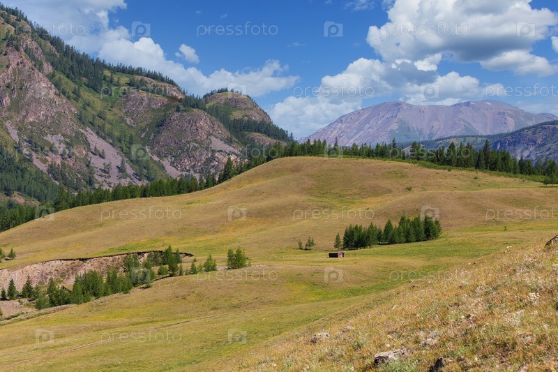 Летний пейзаж долины в горах Алтая, Россия, в солнечную погоду