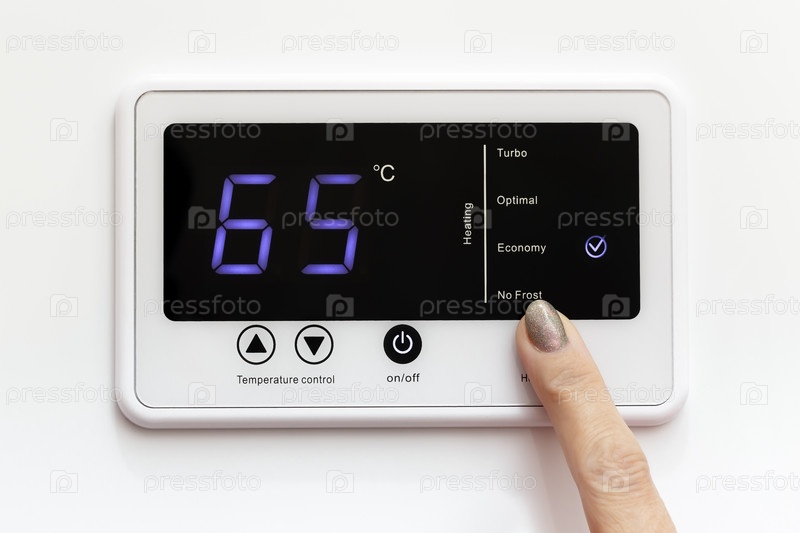Панель управления бытовым котлом с включенным экономичным режимом. Концепция экономии и бережного использования ресурсов