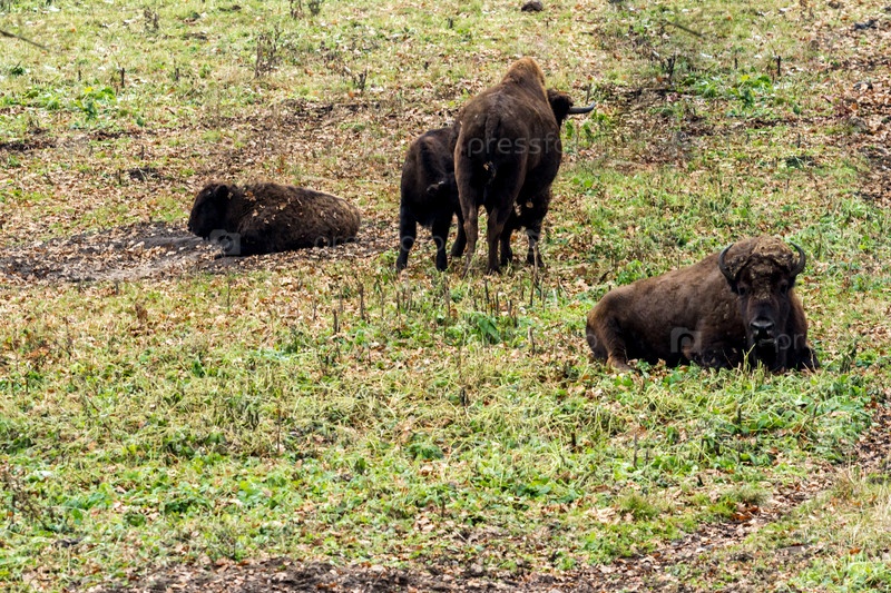 Европейский бизон (Bison bonasus), также известный как зубр или европейский лесной бизон, Россия