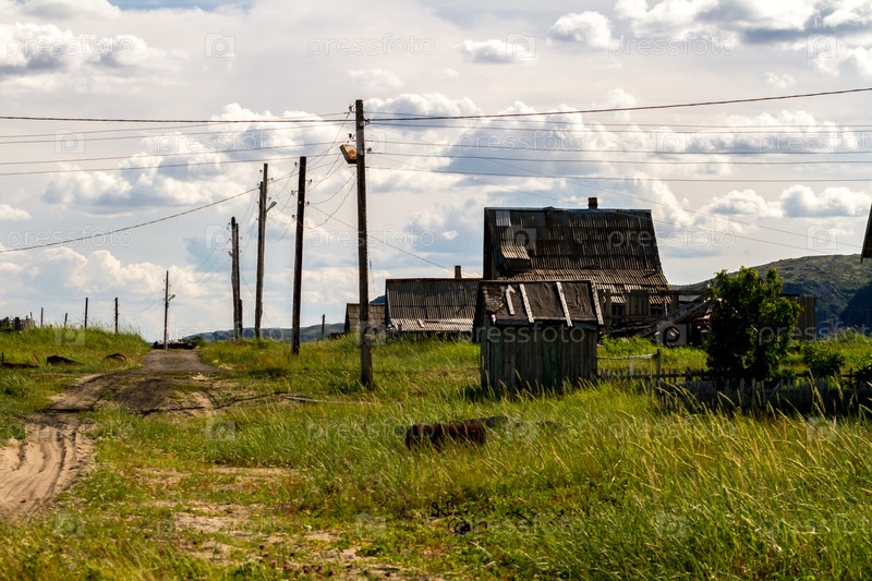 Улица в старом поселке Териберка Кольского района Мурманской области, Россия