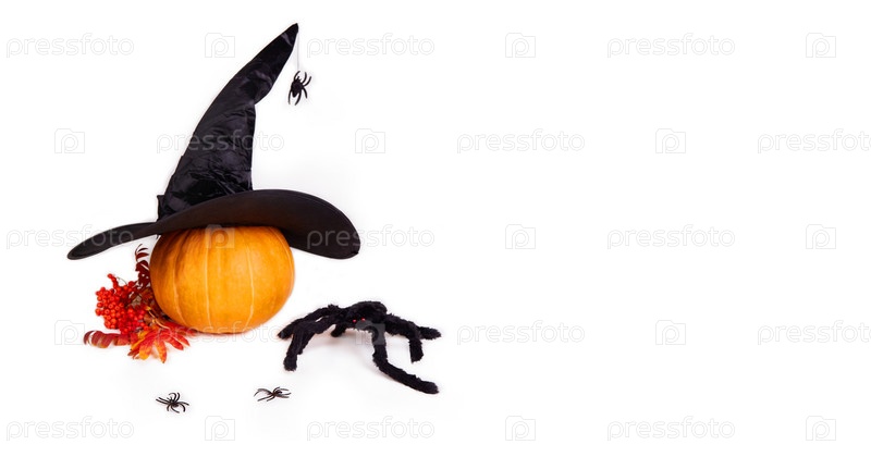 Праздник Хэллоуин. Тыква, шляпа ведьмы, паук