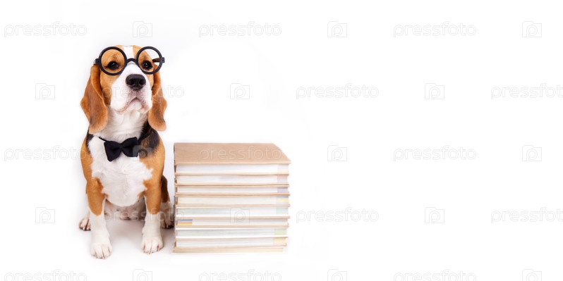 Бигль в очках и галстуке-бабочке