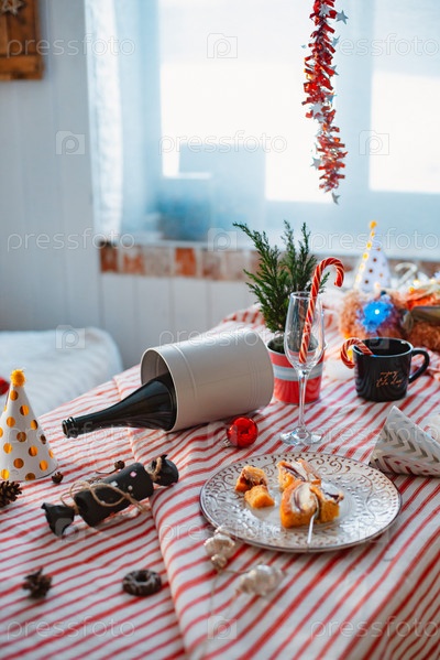 Интерьер комнаты после новогодней вечеринки