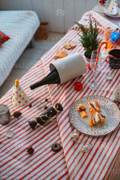 Интерьер комнаты после новогодней вечеринки. синий понедельник