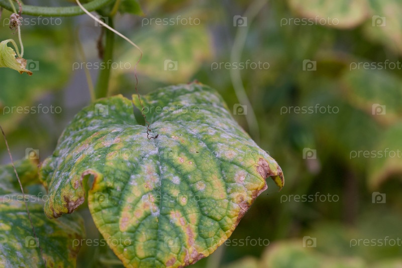 Болезни огурцов. Листья огурца, пораженные болезнью. Выборочный фокус