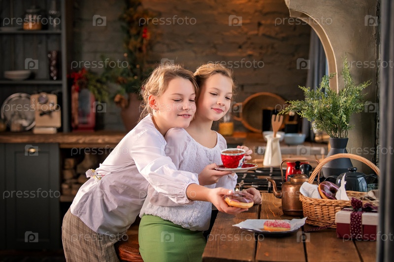 Две сестры пьют чай дома