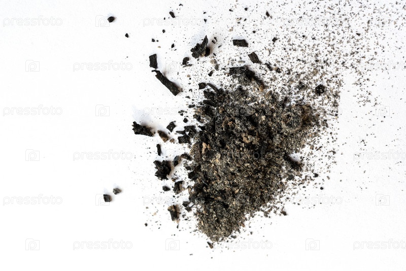 Случайно разбросанная куча пепла на светлом фоне. Выборочный фокус
