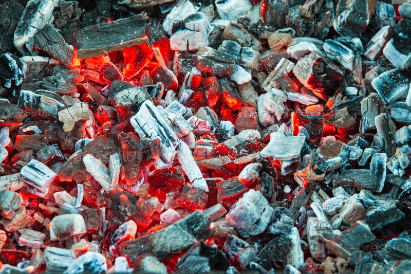 Горячие угли, оставшиеся после сжигания дров. Фон