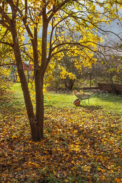 тачка, заполненная листьями