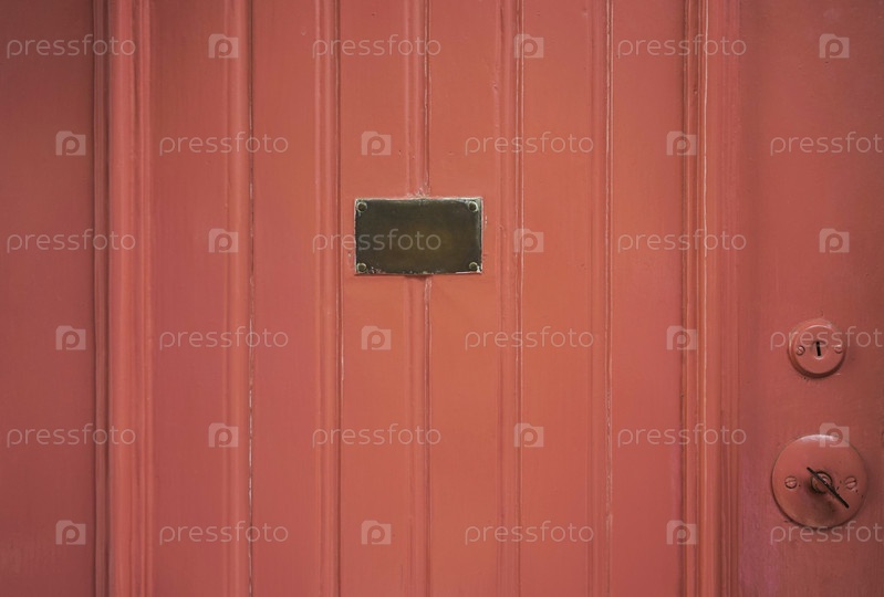 Окрашенная деревянная дверь с латунной пластиной