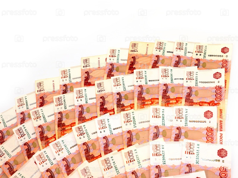 Бумажные банкноты пятитысячных российских рублей, выложенные в виде веера