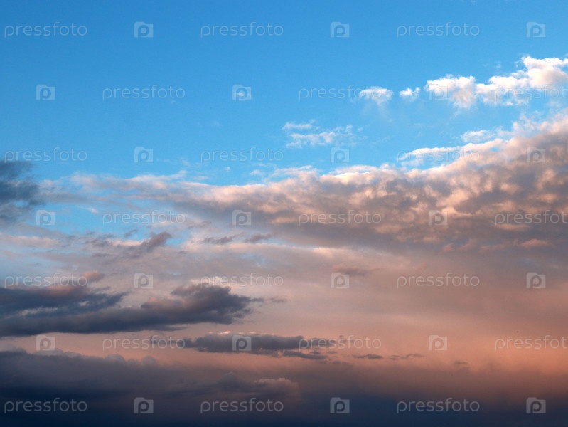 Облачное небо, освещенное светом заходящего солнца