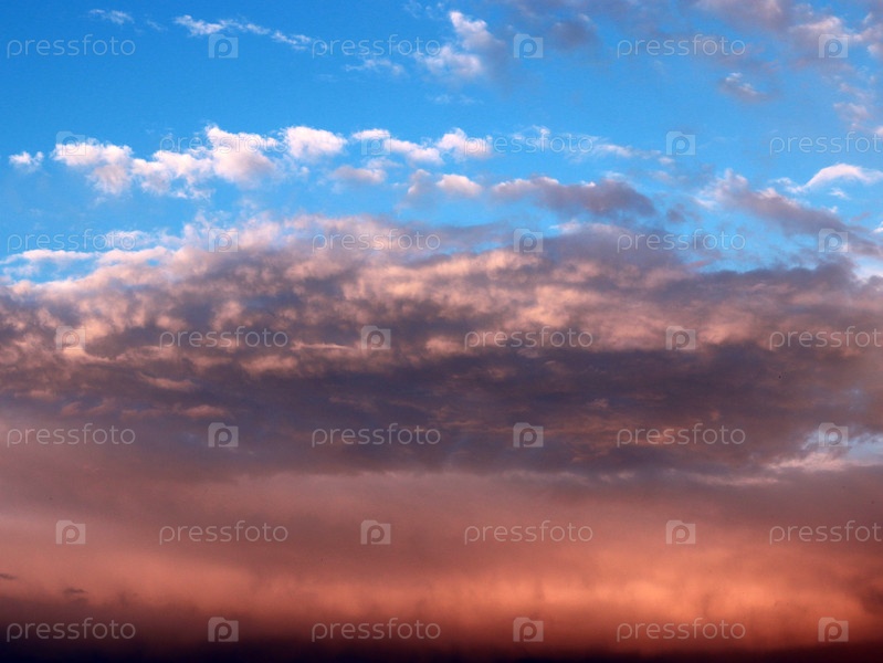 Облачное небо, освещенное светом заходящего солнца