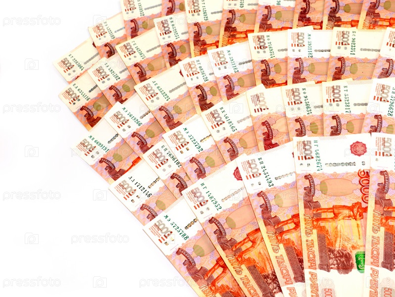 Бумажные банкноты пятитысячных российских рублей, выложенные в виде веера