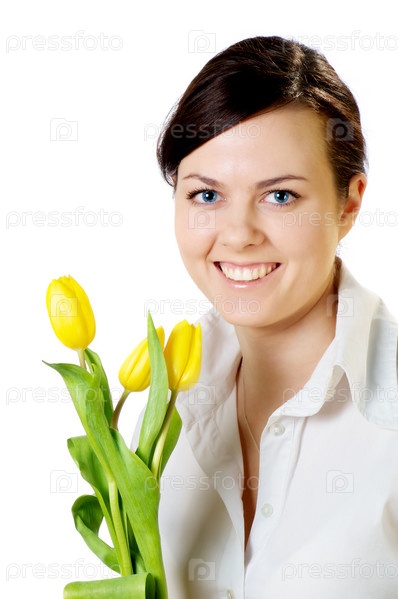 Улыбающаяся девушка с тюльпанами