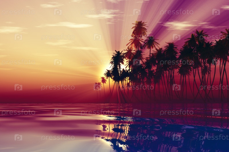 Солнечные лучи внутри кокосовых пальм