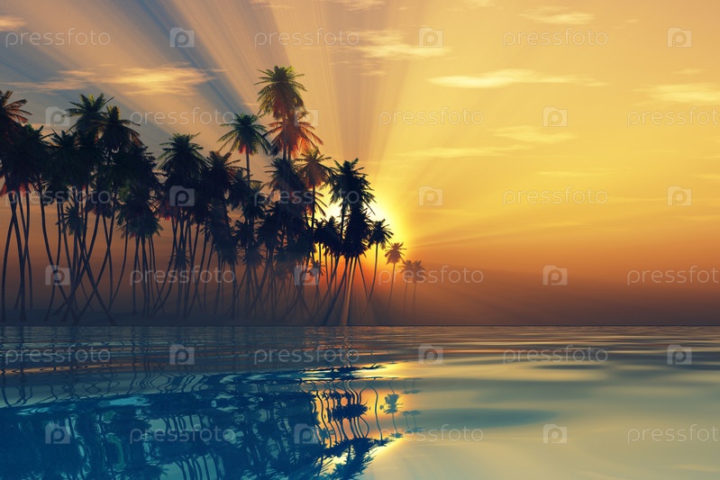 Солнечные лучи внутри кокосовых пальм