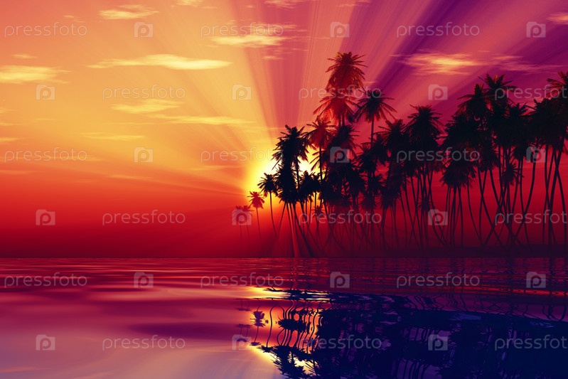 Солнечные лучи внутри кокосовых пальм