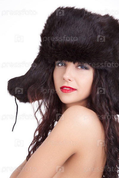 Улыбка девушка в зимней меховой шапке