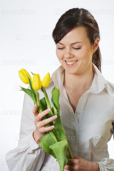 Улыбающаяся девушка с тюльпанами