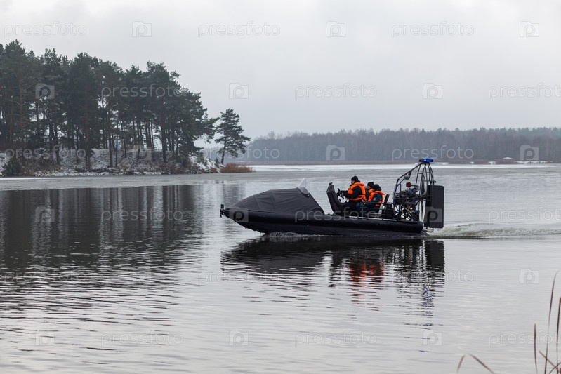 Спасательная команда плывет на воздушной подушке, чтобы спасти рыбаков со льда