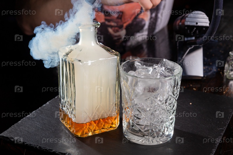 Бармен смешивает виски с дымом, чтобы придать напитку особый вкус