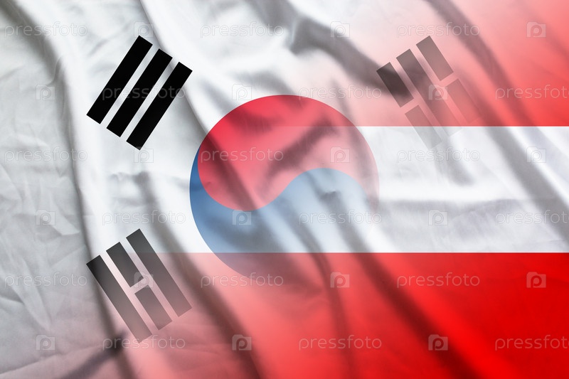 Политический флаг Южной Кореи и Австрии на международных переговорах AUT KOR
