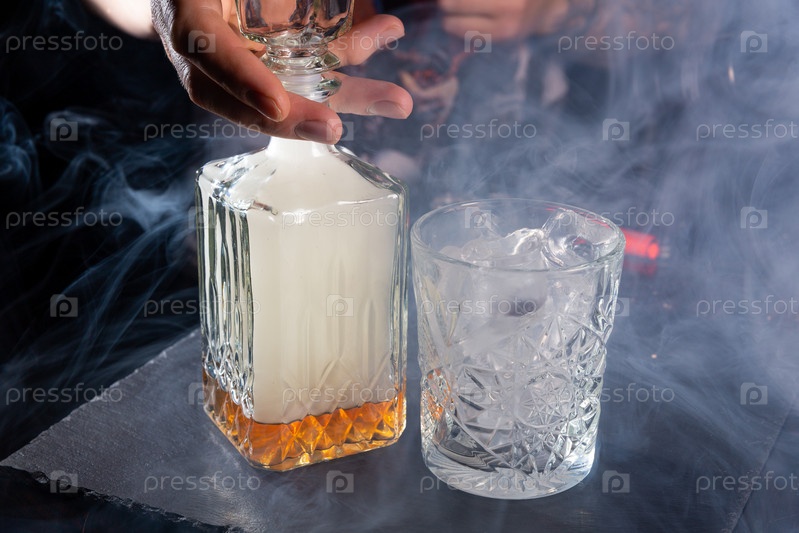 Бармен смешивает виски с дымом, чтобы придать напитку особый вкус