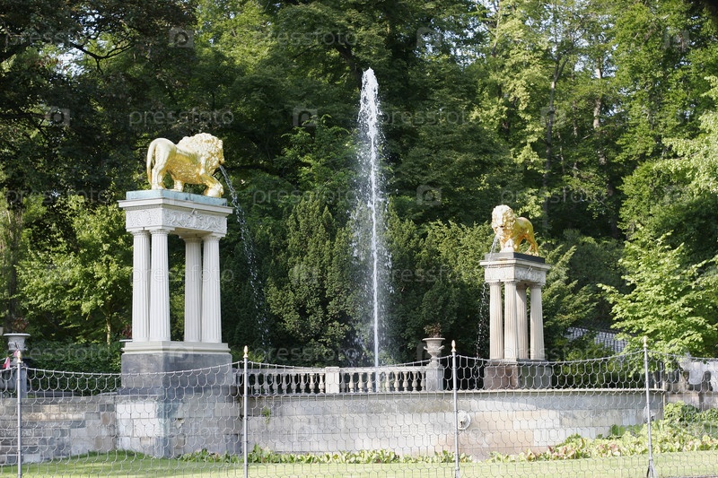 Фонтан со статуями золотых львов