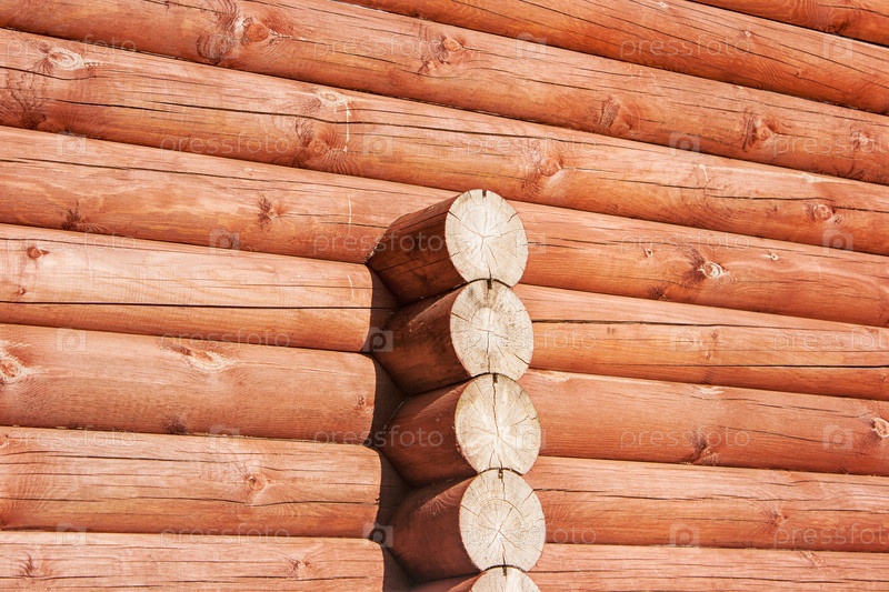 Новая стена коричневого бревенчатого дома