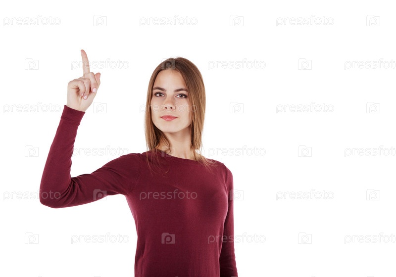 Девушка показывает пальцем вверх