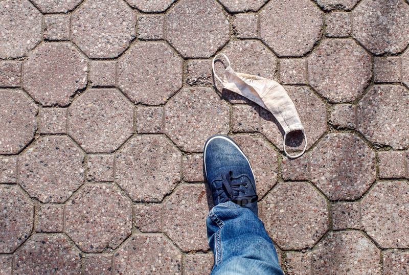 Защитная медицинская маска на тротуаре