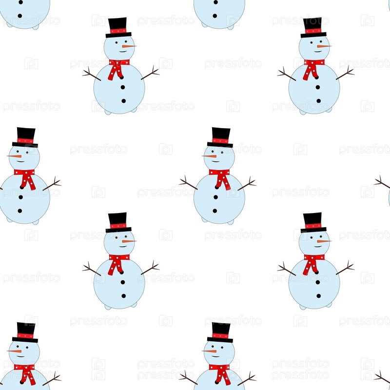 Рождественский бесшовный узор с милыми снеговиками. Зимний бесшовный детский узор для обоев, ткани, оберточной бумаги